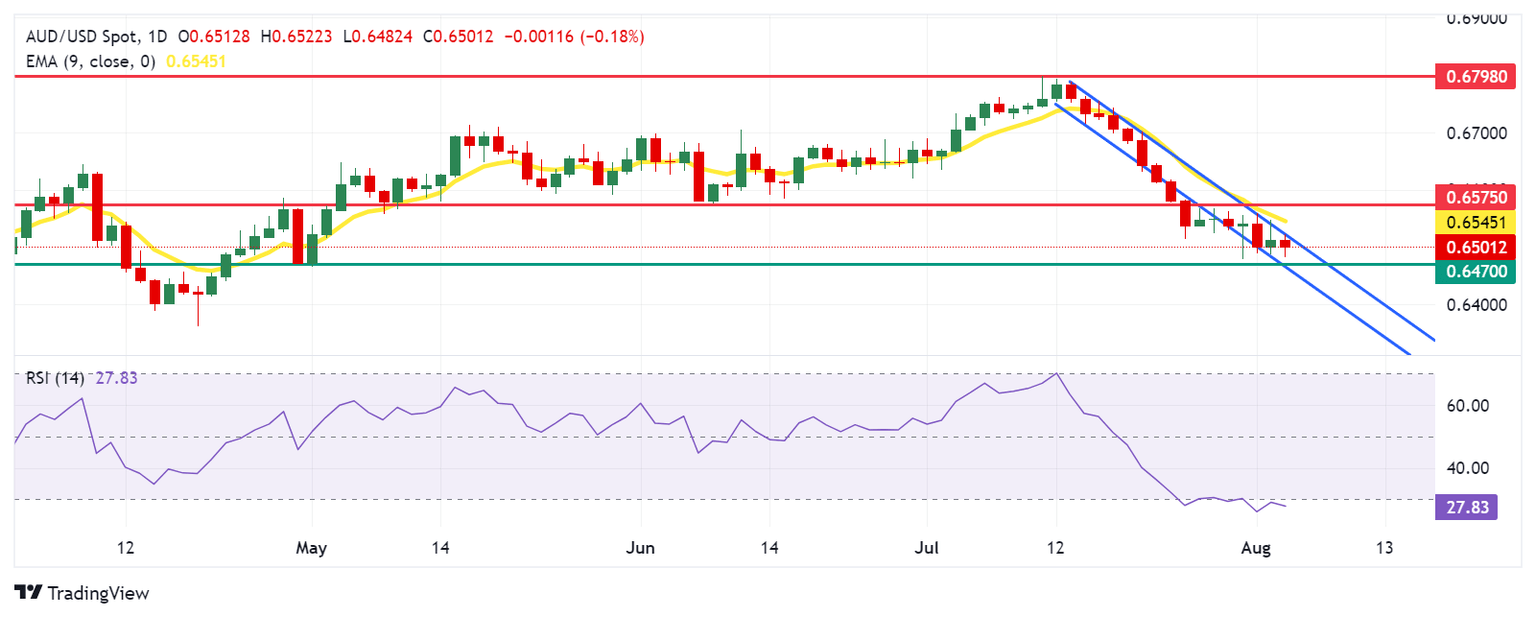 El par AUD/USD podría encontrar soporte inmediato alrededor del límite inferior del canal descendente en el nivel de soporte de retroceso de 0.6470.