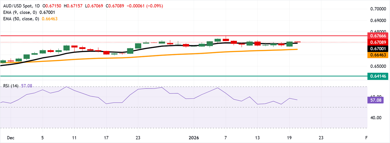 El Dólar australiano se mantiene por encima de la EMA de nueve días en 0.6700