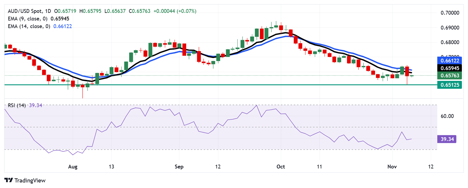 Análisis Técnico: El Dólar australiano se mantiene por debajo de 0.6600, EMA de nueve días