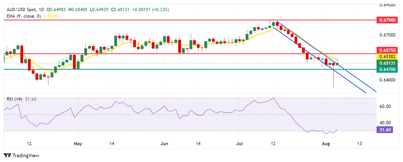 El par AUD/USD podría encontrar soporte inmediato alrededor del soporte de retroceso en el nivel de 0.6470, seguido por el límite inferior del canal descendente alrededor del nivel de 0.6450.