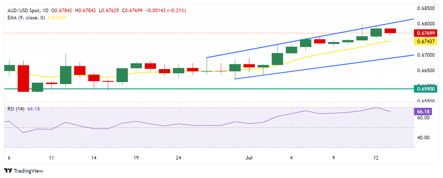 El par AUD/USD podría volver a probar el límite superior del canal ascendente cerca del nivel psicológico de 0.6800.