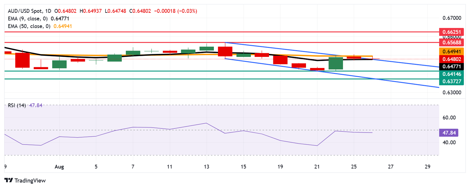 El par AUD/USD está probando la zona de resistencia inmediata alrededor del límite superior del canal descendente en 0.6590, alineada con la media móvil exponencial (EMA) de 50 días en 0.6494. Una ruptura exitosa por encima de esta crucial zona de resistencia puede confirmar el cambio alcista y apoyar al par para acercarse al máximo mensual de 0.6568, alcanzado el 14 de agosto, seguido del máximo de nueve meses de 0.6625, que se registró el 24 de julio.