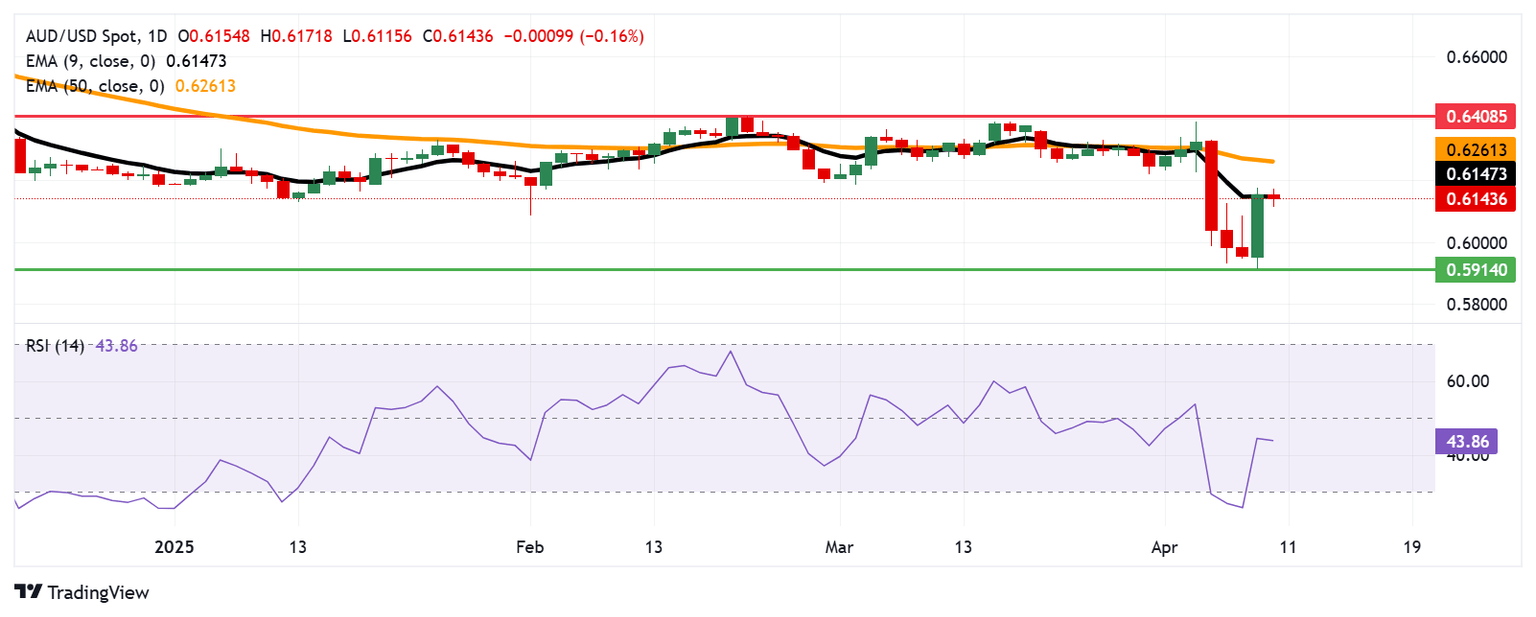 El Dólar Australiano retrocede desde la EMA de nueve días cerca de 0.6150