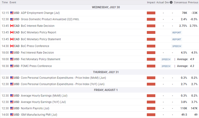 - Además de las decisiones de tasas de interés de los dos bancos centrales, una serie de publicaciones económicas de alto impacto de EE.UU. también está pesando sobre el calendario de datos de esta semana.