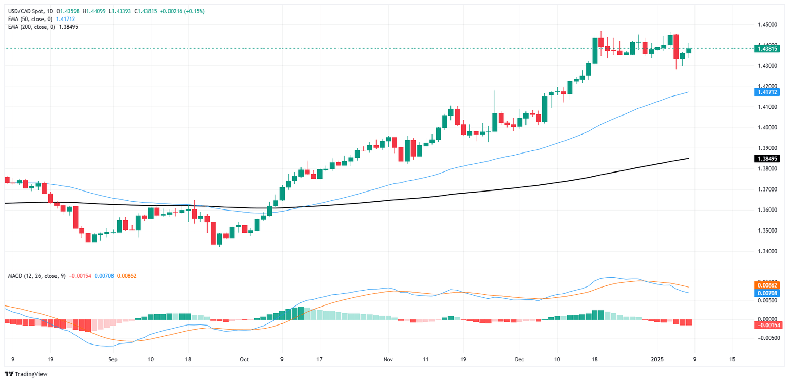 A pesar de una congelación a corto plazo en el impulso, el par sigue inclinándose firmemente hacia territorio alcista, aunque los compradores están luchando por completar el viaje hacia la zona de 1.4500. El nivel de 1.4400 está demostrando ser la barrera a vencer, y los postores del Loonie podrían forzar al par de vuelta a la media móvil exponencial (EMA) de 50 días que está subiendo hacia 1.4200.