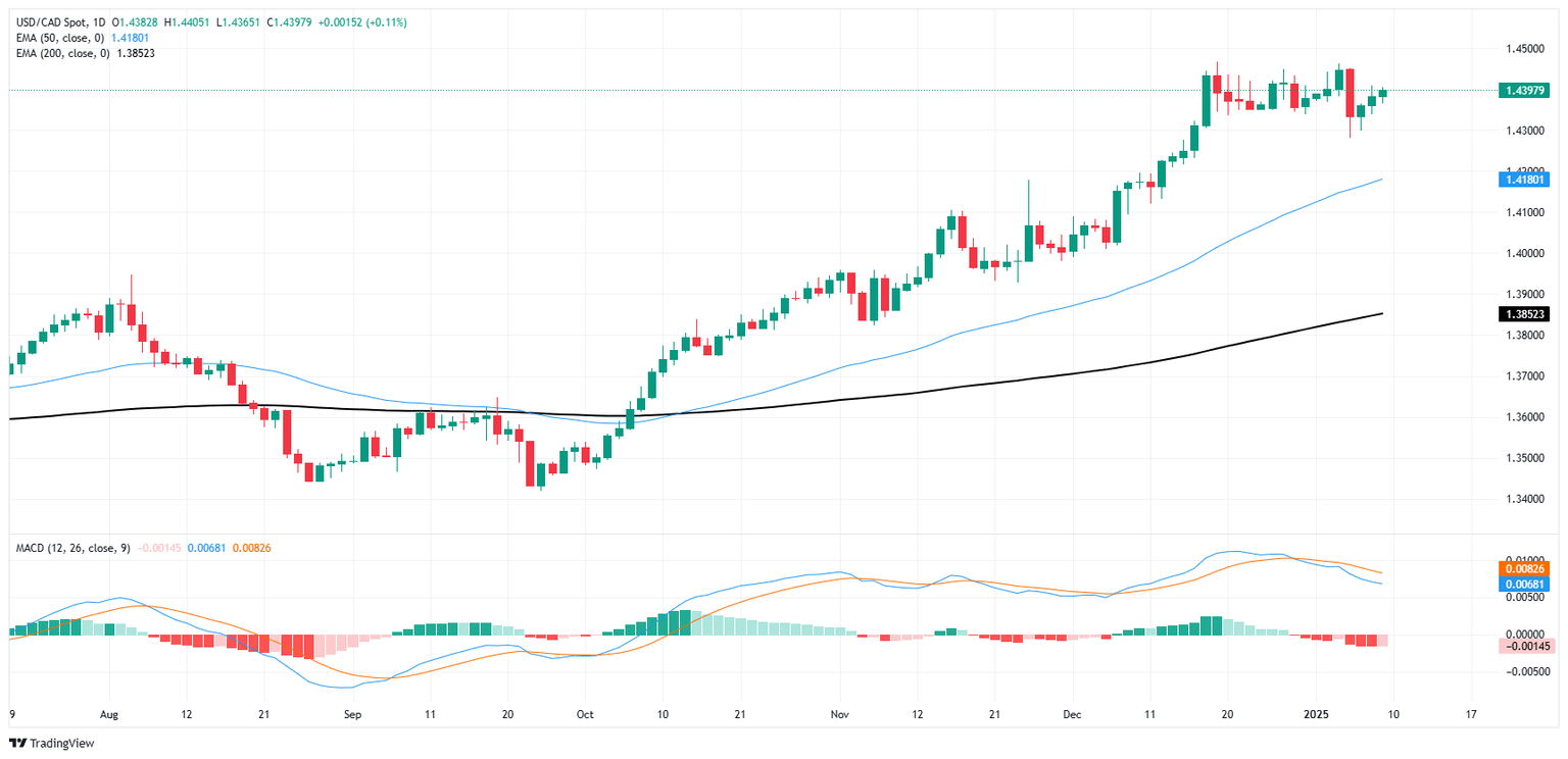 El USD/CAD ha subido más del 7% desde el extremo bajo de septiembre cerca de 1.3400, y aunque parece que el CAD no va a perder más terreno por el momento, los compradores del Loonie siguen sin poder sostener las cosas y hacer que el par vuelva a bajar por debajo de 1.4300. La barrera inmediata para una recuperación del CAD será la media móvil exponencial (EMA) de 50 días subiendo a 1.4200, poniendo un suelo técnico debajo del Dólar.
