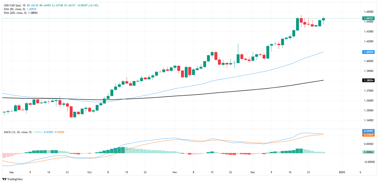 El Dólar canadiense vuelve a la parte baja para cerrar la semana de negociación de Navidad, cayendo frente al Dólar y empujando al USD/CAD hacia el extremo superior de la congestión reciente en el gráfico. El par continúa subiendo mientras las ofertas cotizan bien por encima de la media móvil exponencial (EMA) de 50 días cerca de 1.4100.