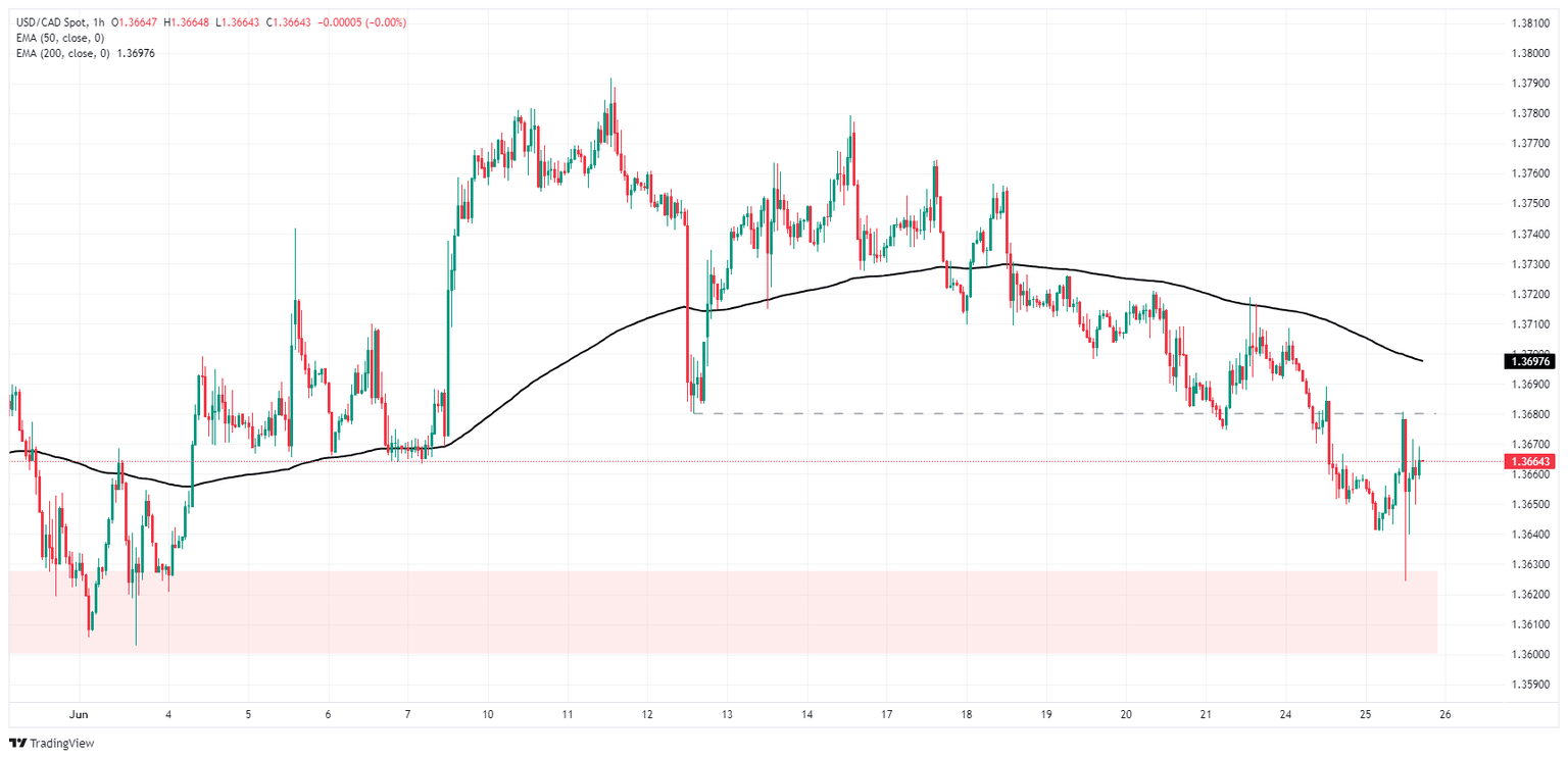El USD/CAD cayó a un nuevo mínimo de 14 días de 1.3624 antes de recuperarse a las ofertas de apertura del martes cerca de 1.3660. El par está atrapado en una agitación gráfica a corto plazo mientras los postores luchan por romper la resistencia técnica intradía en 1.3680.