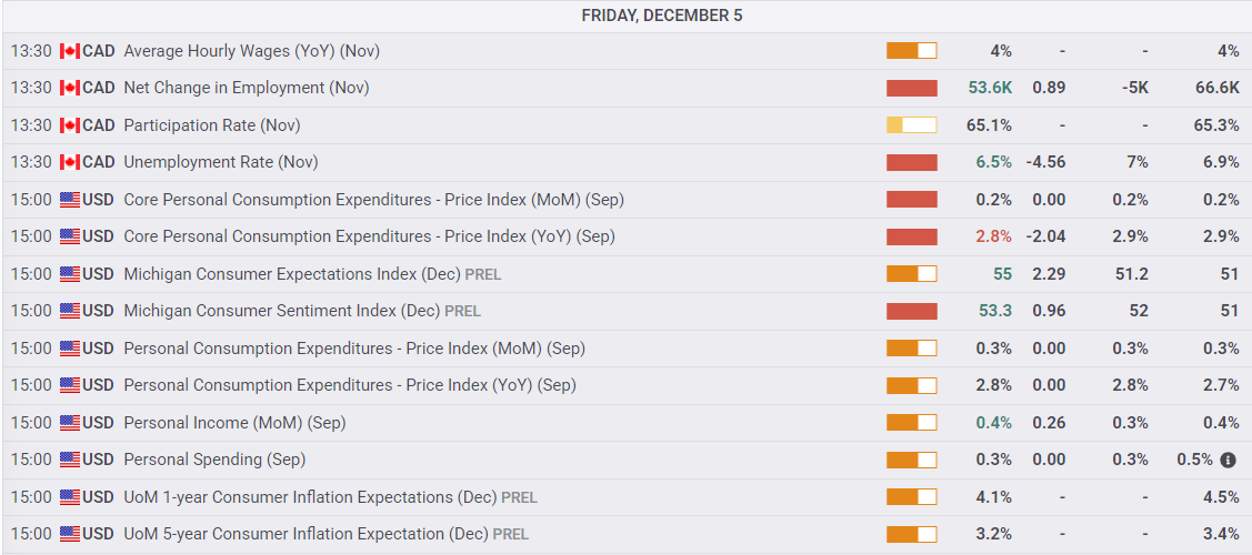 - La Variación Neta del Empleo canadiense mostró 53.6K nuevas ganancias netas de empleo en noviembre, muy por encima de la contracción pronosticada de 5K.