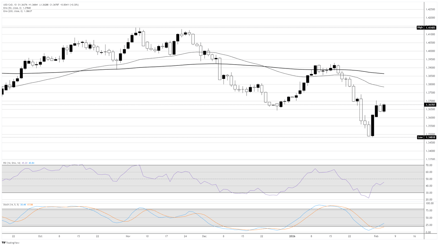 El USD/CAD cotiza cerca de 1.3635 el miércoles, manteniéndose dentro de un rango familiar tras retirarse del mínimo de finales de enero cerca de 1.3490. El par ha rebotado desde los mínimos de 2025 a medida que el Dólar estadounidense encontró una nueva demanda tras la nominación de Warsh y datos más firmes del ISM. La media móvil exponencial (EMA) de 50 días cerca de 1.3700 marca la primera capa de resistencia, con la EMA de 200 días y la apertura anual de 2026 agrupadas alrededor de 1.3725-1.3735.
