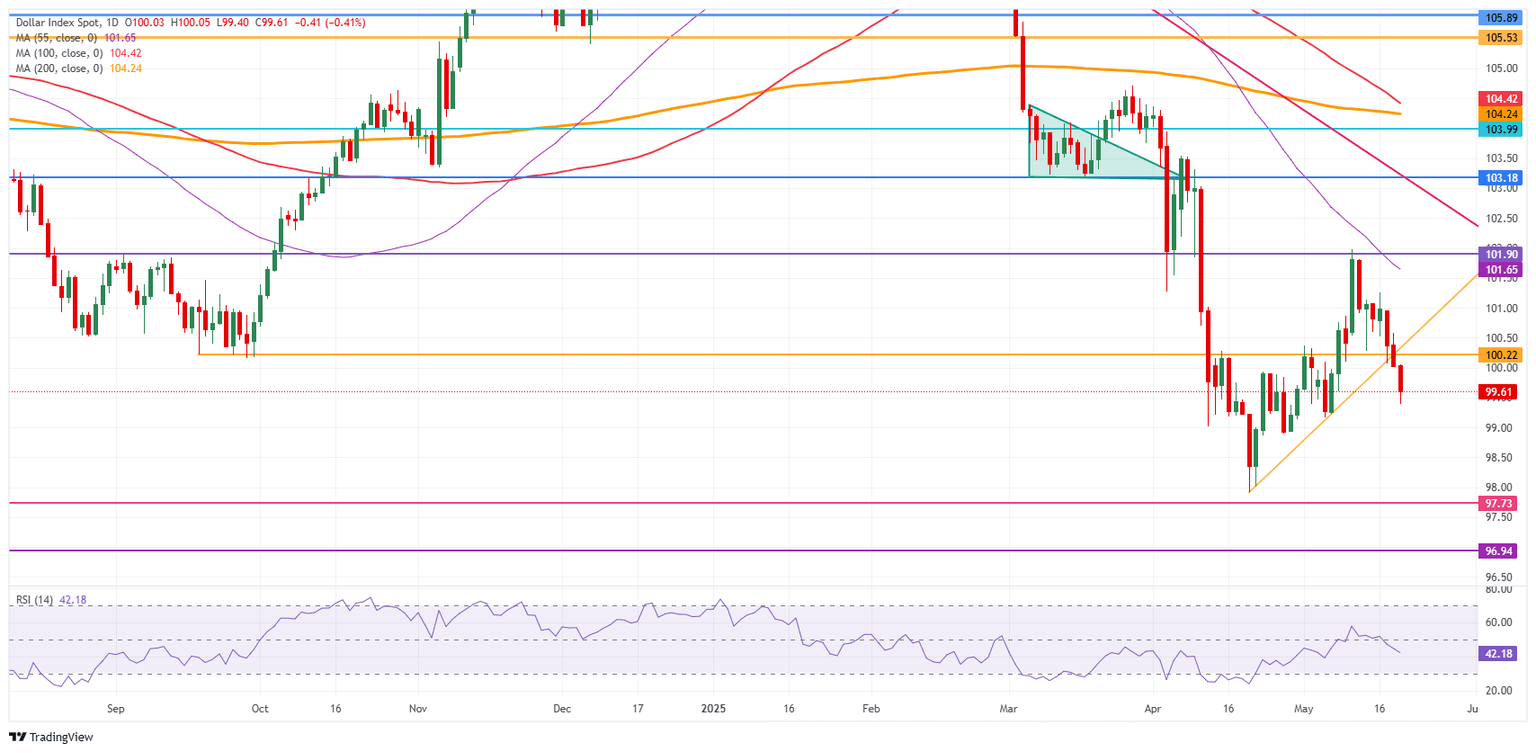 - El Índice del Dólar estadounidense se hunde por debajo de 100.00 y se dirige hacia 99.50, poniendo a prueba más caídas.