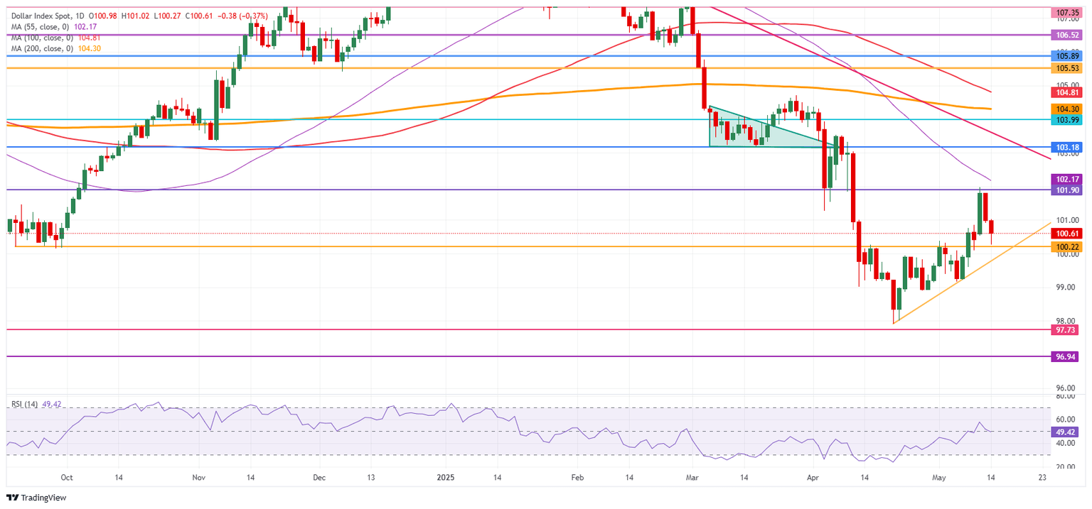 - El Índice del Dólar estadounidense alcanza soporte antes del nivel 100 y rebota por ahora.