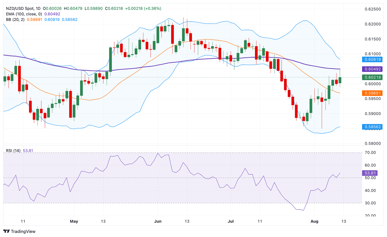 Un giro alcista podría exponer al NZD/USD a la EMA de 100 periodos cerca de 0.6050. Cualquier compra de seguimiento por encima de este nivel verá un repunte hacia 0.6082, el límite superior de la Banda de Bollinger. Más al norte, el próximo objetivo al alza surge en 0.6134, un máximo del 8 de julio.