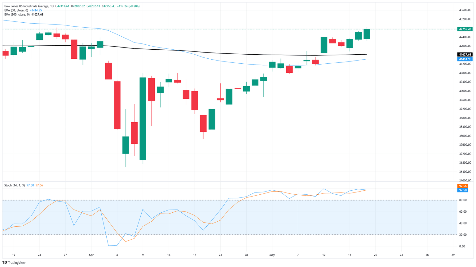 El Promedio Industrial Dow Jones (DJIA) ganó terreno para iniciar la nueva semana de negociación, tocando 42.800 por primera vez en ocho semanas, mientras los mercados continúan empujando a los mercados de renta variable de regreso a la parte alta tras la caída de acciones impulsada por aranceles de este año.