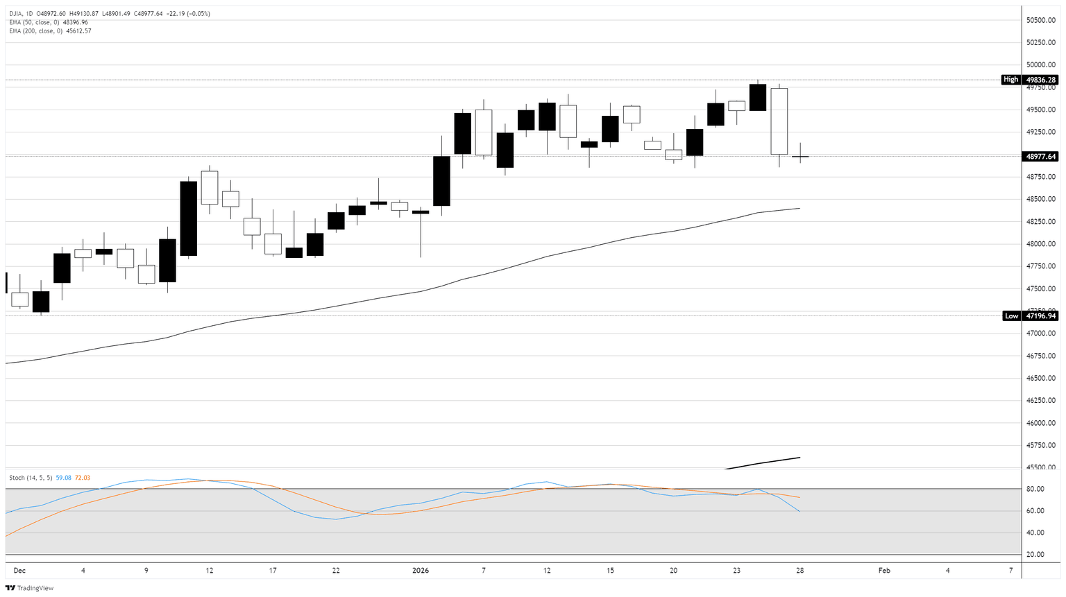 El Promedio Industrial Dow Jones (DJIA) se mantuvo en el rango medio mientras los inversores esperan la última decisión sobre tasas de interés de la Reserva Federal (Fed). Algunos sectores del mercado mostraron impulso en el sector de chips, llevando al índice Standard & Poor’s 500 a nuevos máximos históricos, antes de retroceder antes de la primera decisión de tasas de la Fed de 2026.