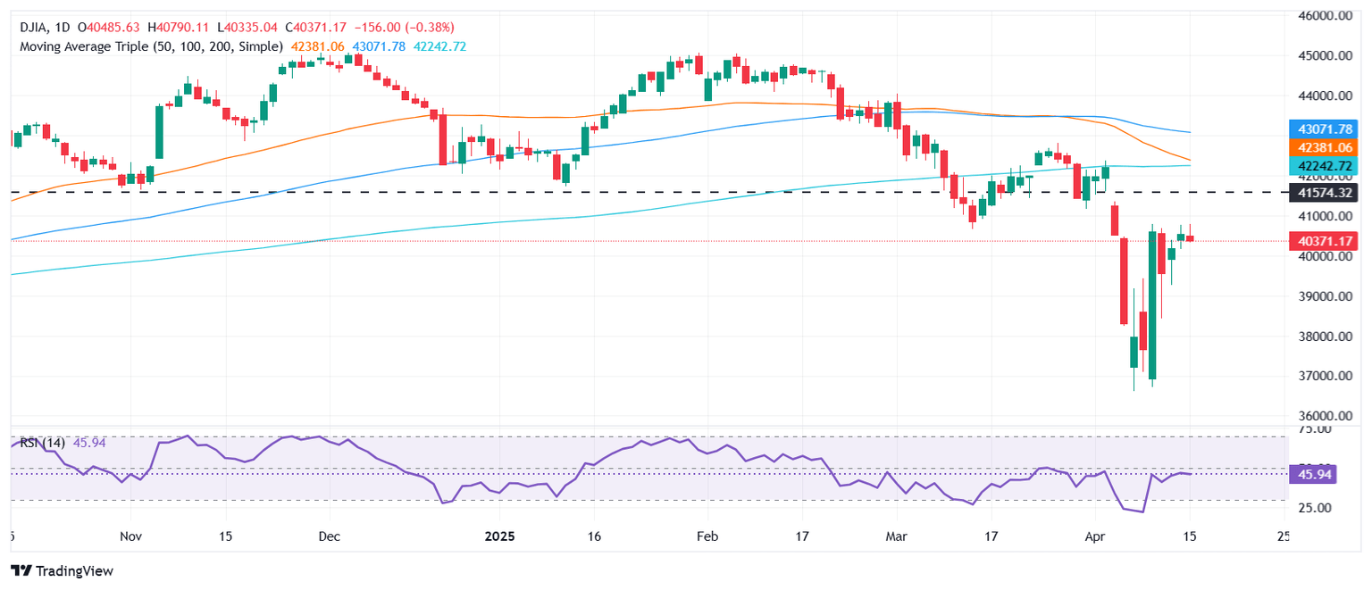 - El alza del Dow se ve limitada cerca de 40.500; una caída por debajo de 40.000 podría exponer 39.877 y profundizar la presión bajista.