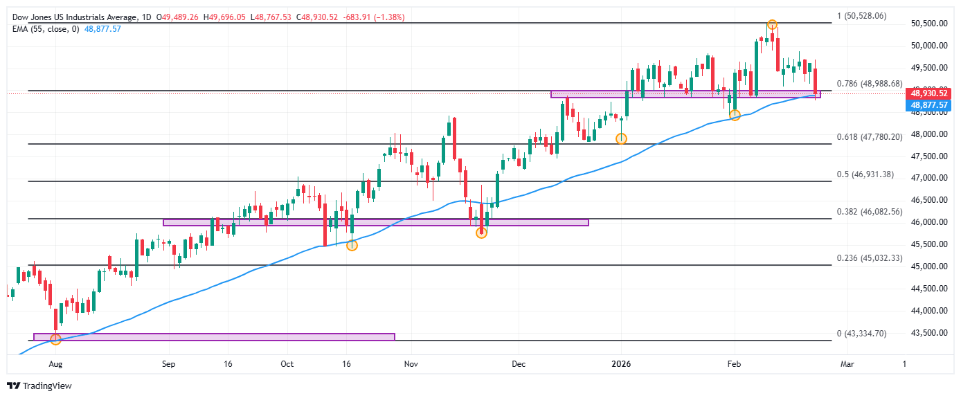 - El Dow Jones pierde un 1.58% diario, llegando a mínimos no vistos desde el 2 de febrero en 48.780.