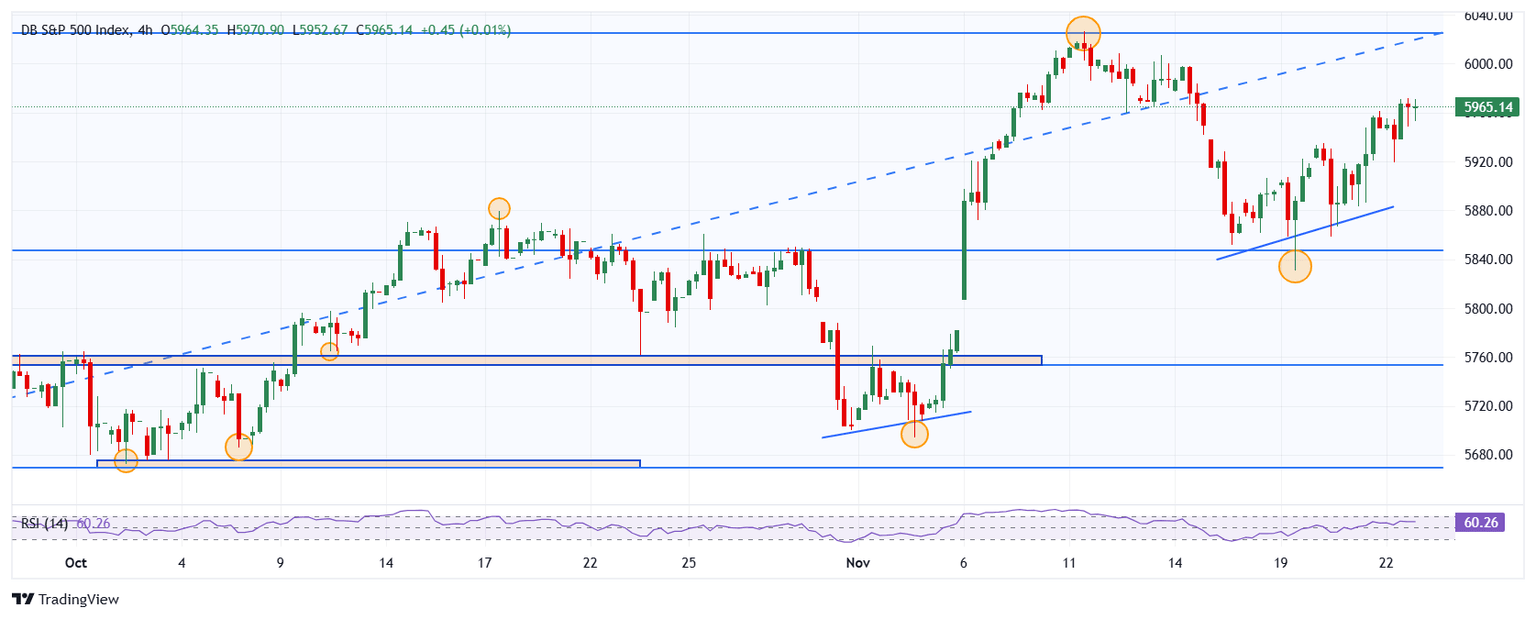 El índice bursátil S&P 500 gana un 0.30% en la jornada del viernes, animado por cifras económicas positivas reflejadas en el PMI compuesto Global de S&P, el cual subió a 55.3 en la estimación preliminar de noviembre desde 54.1 en octubre, mientras que el PMI de servicios subió a 57 desde 55 en el mismo periodo.