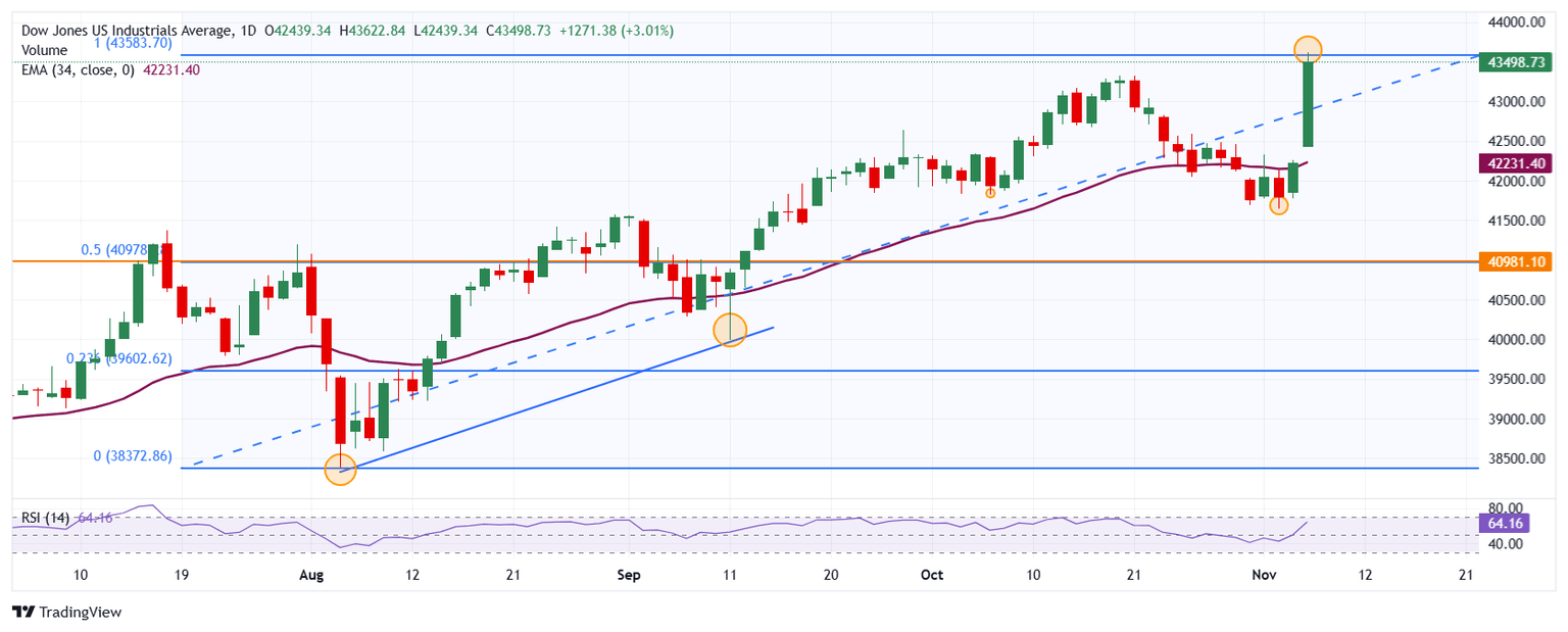 El Dow Jones, Nasdaq 100 y S&P 500 se disparan tras la victoria de Trump en las elecciones presidenciales de EE.UU.