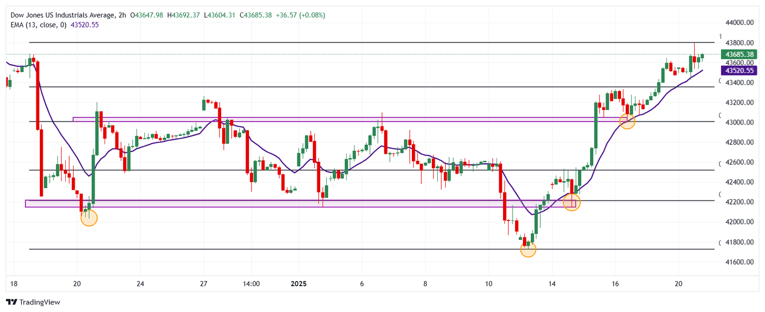 El Dow Jones, Nasdaq 100 y S&P 500 se mantienen alcistas en medio de la investidura de Donald Trump