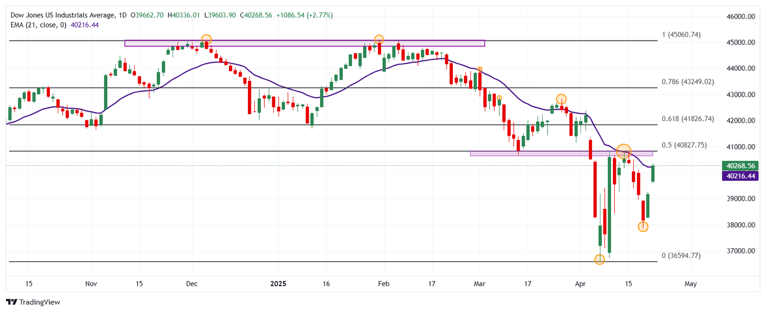 El Dow Jones gana 1085 puntos al inicio de la sesión americana, alcanzando máximos no vistos desde el 16 de abril en 40.336.