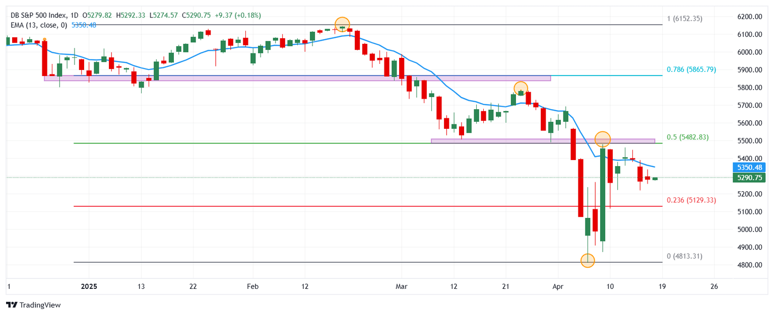 El Dow Jones estableció una resistencia de corto plazo dada por el máximo del 14 de abril en 40.774. La siguiente resistencia importante está en 42.820, máximo del 26 de marzo. A la baja, el soporte lo observamos en 36.614, punto pivote del 7 de abril.