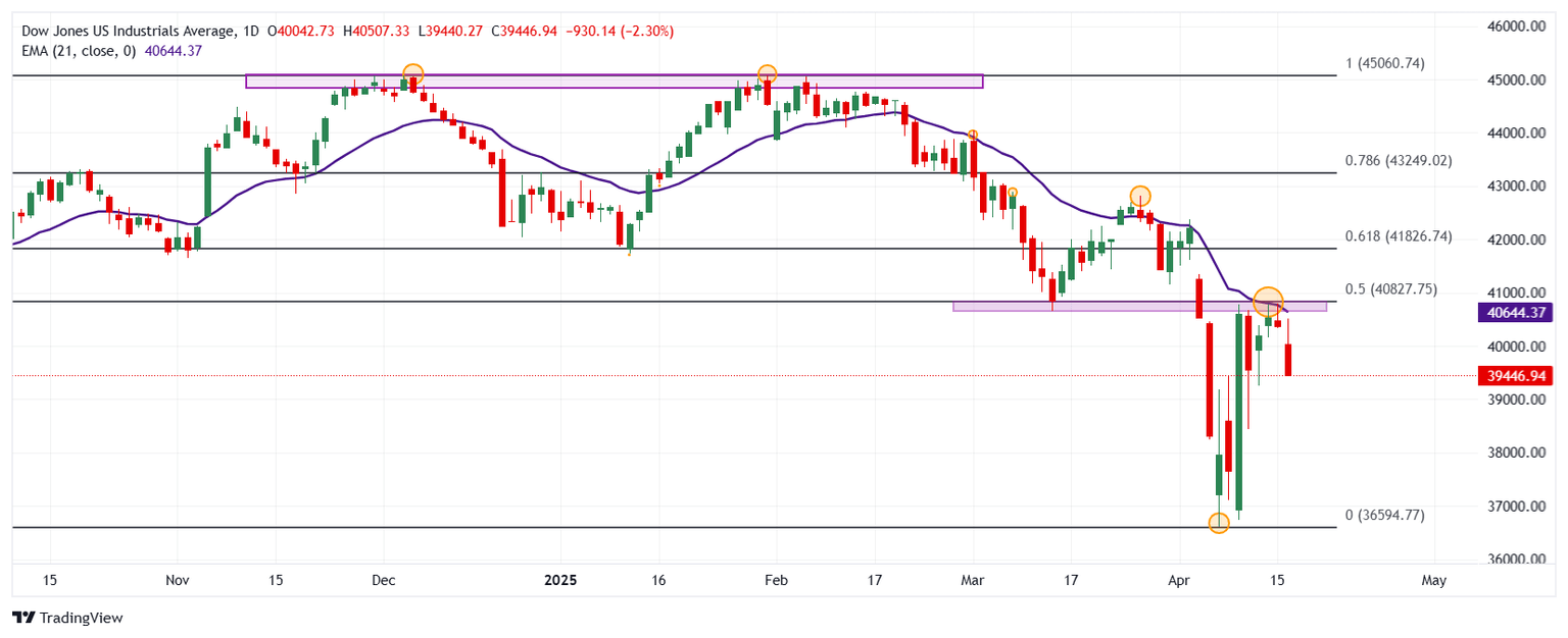 El Dow Jones marcó un máximo del día en 40.042, donde atrajo vendedores agresivos que arrastraron el índice a mínimos no vistos desde el 11 de abril en 39.638.