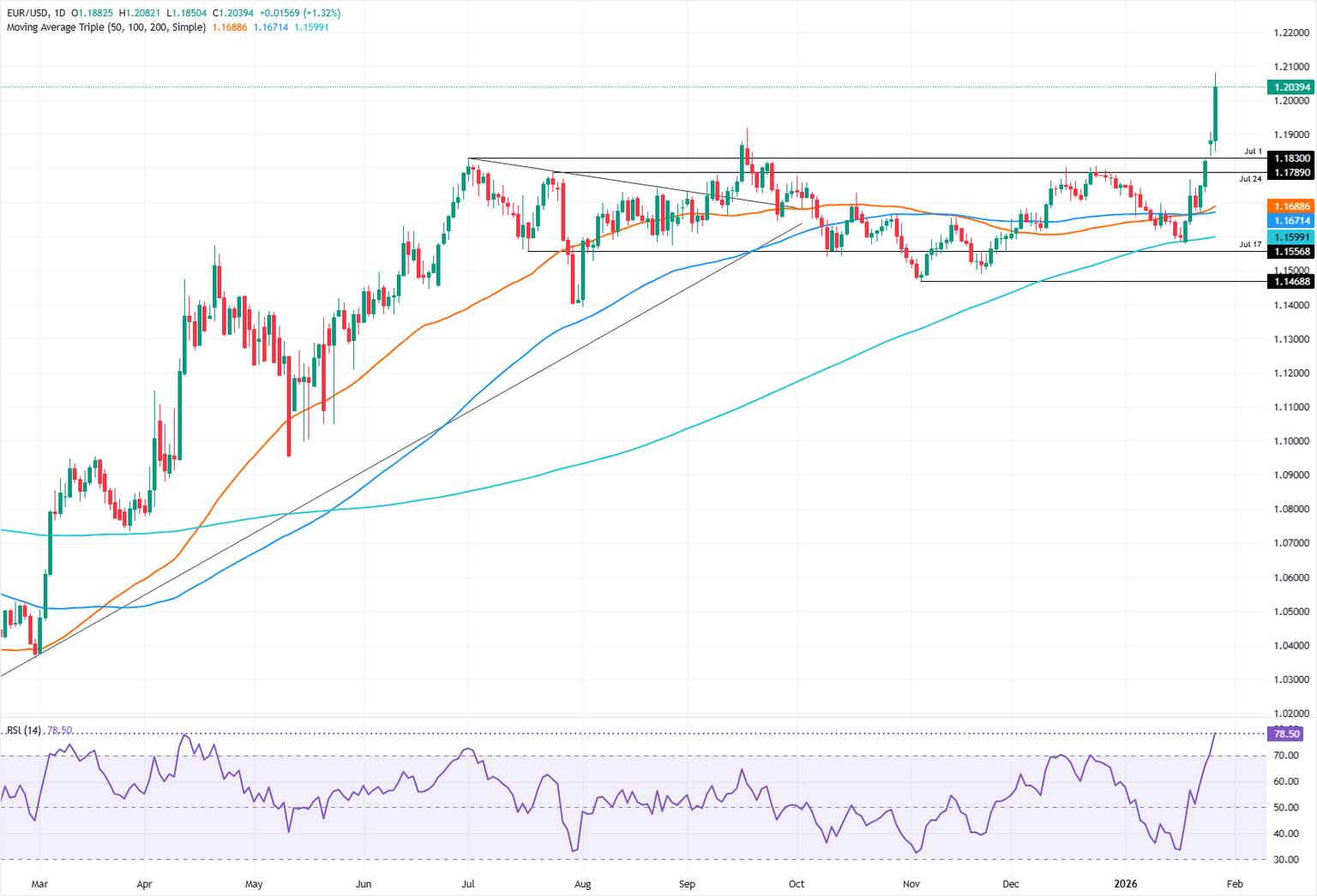 EUR/USD se dispara a un nuevo máximo de cinco años de 1.2082 el martes después de que el presidente de EE.UU., Donald Trump, expresara que no cree que el Dólar haya caído demasiado, lo que desencadenó una venta masiva del Dólar, que hasta ahora ha bajado más del 1.31% en el día. En el momento de escribir, el par se negocia a 1.2037, con un aumento de más del 1.30%.