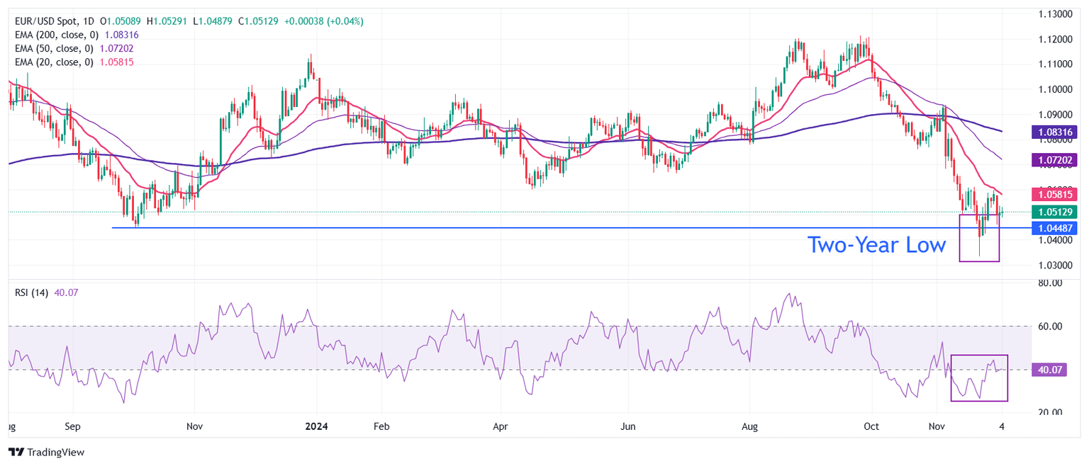 - Se espera que el impacto de los datos de empleo de ADP sea limitado ya que los inversores esperan los datos clave de Nóminas no Agrícolas (NFP) de EE.UU. para noviembre, que se publicarán el viernes, para obtener una imagen clara del estado actual del mercado laboral.