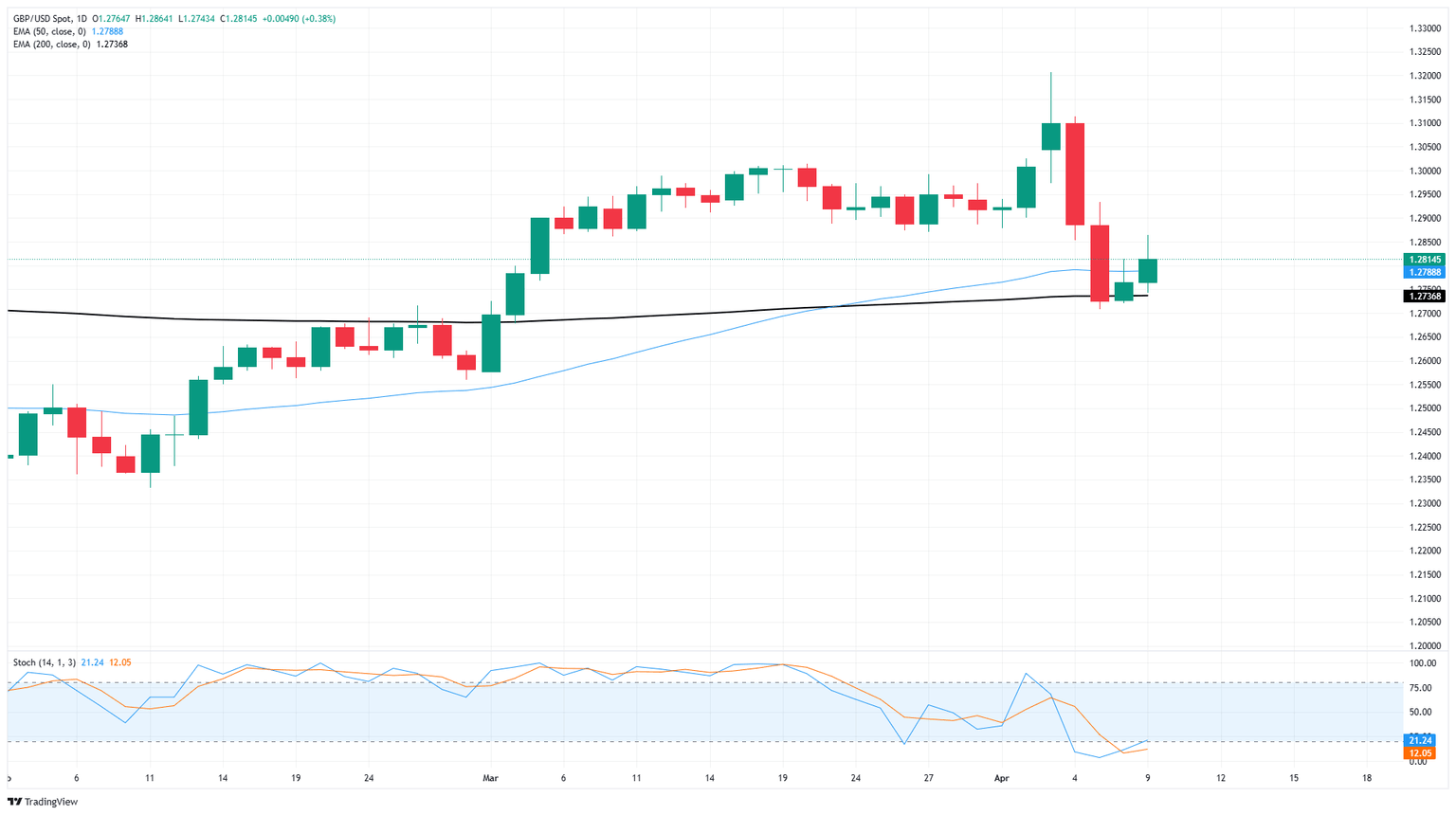 El GBP/USD probó niveles más altos el miércoles, subiendo de nuevo por encima de la zona de 1.2800 después de que el sentimiento del mercado general se recuperara en todos los ámbitos. La administración Trump ha vuelto a cambiar su política de aranceles de "sin excepciones, sin retrasos", y ha retrasado nuevamente los aranceles, esta vez por 90 días.