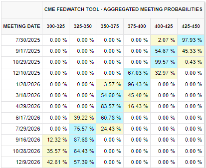 Las expectativas del mercado sobre el tipo de interés de los fondos de la Reserva Federal son seguidas por la herramienta FedWatch del CME, que determina el comportamiento de muchos mercados financieros en previsión de futuras decisiones de política monetaria de la Reserva Federal.