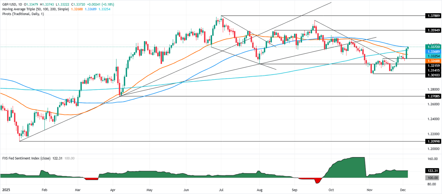 El GBP/USD reanudó su tendencia alcista con la tasa de cambio superando la SMA de 100 días en 1.3369, abriendo la puerta para desafiar 1.3400. Un cierre diario por encima de este último, y la libra podría extender sus ganancias hacia 1.3450 y la cifra de 1.3500.