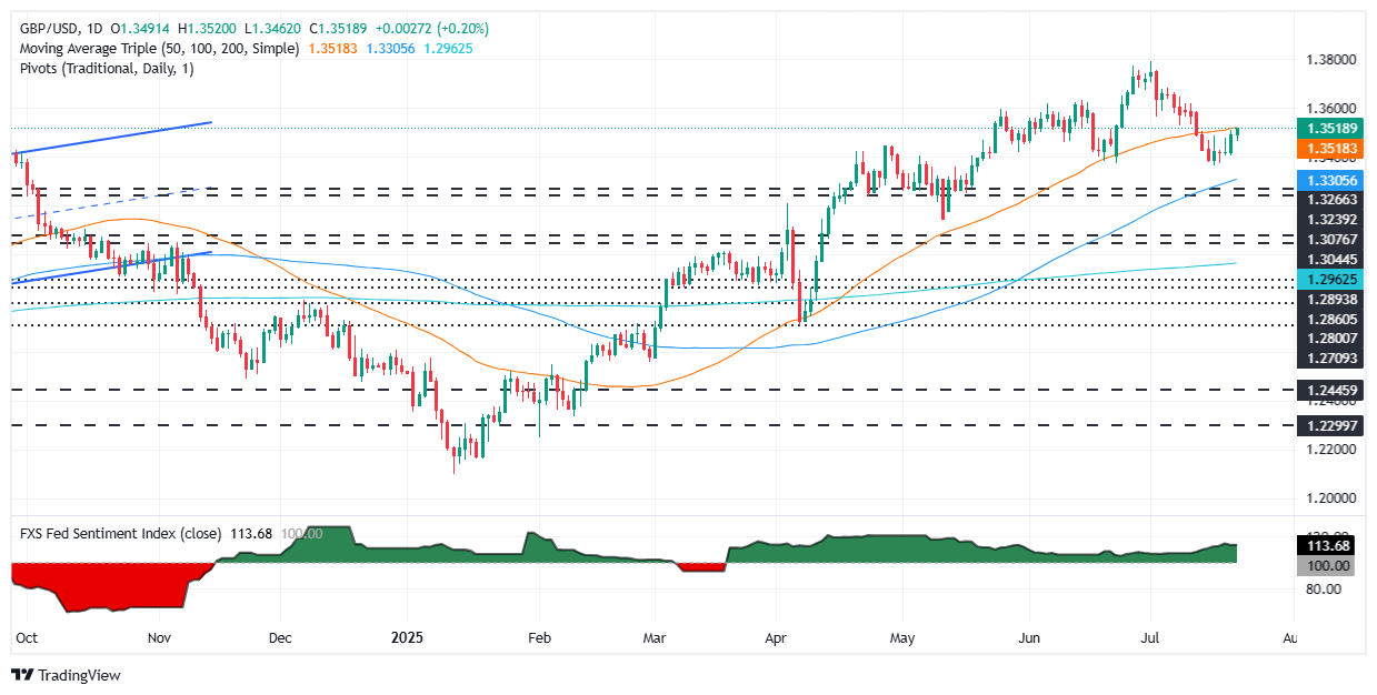 La Libra esterlina se mantiene respaldada por el acuerdo comercial firmado con EE.UU., en medio de tiempos inciertos de negociaciones comerciales entre EE.UU. y sus principales socios comerciales: la Unión Europea (UE), Canadá y México. Estos tres países recibieron cartas de la Casa Blanca que impusieron aranceles de entre el 30% y el 35%, efectivos a partir del 1 de agosto.