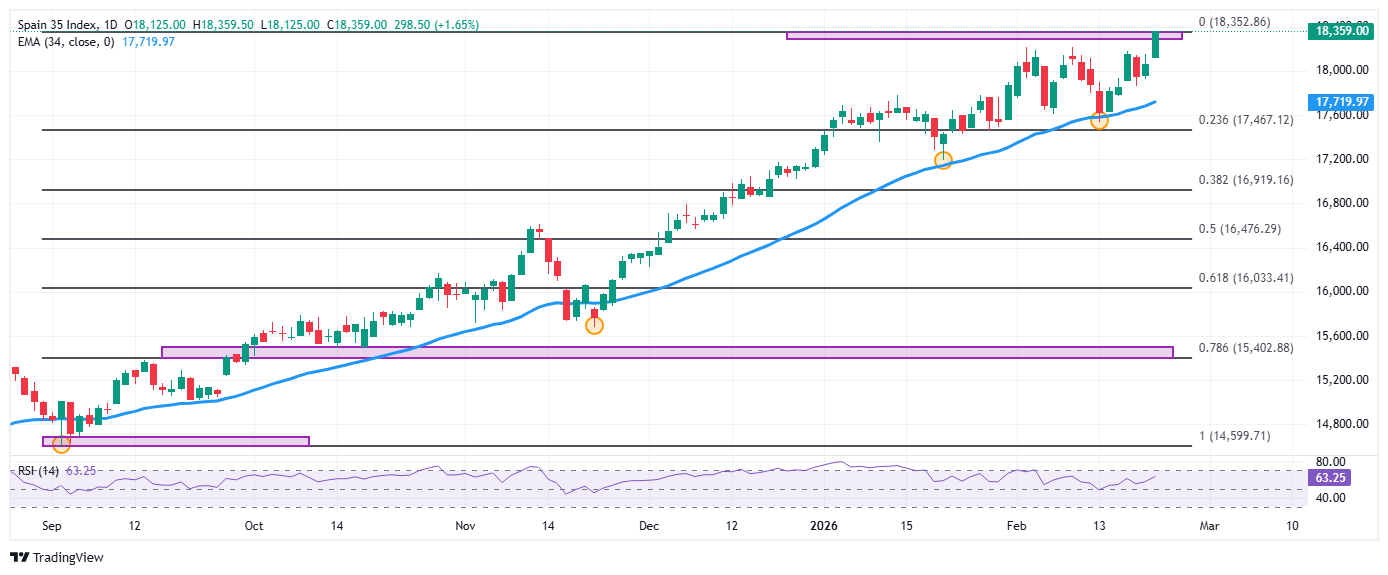 - El Ibex 35 avanza un 1.62% diario, registrando un nuevo máximo histórico en 18.365.