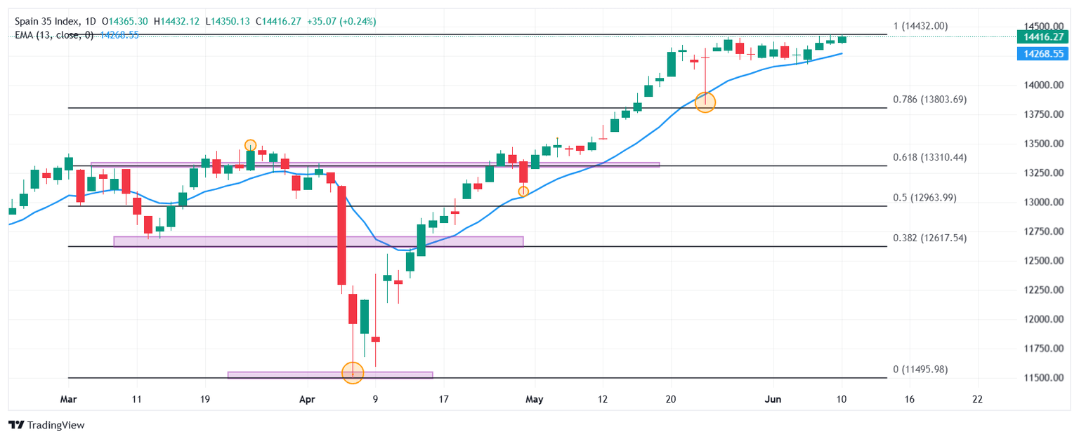 - El Ibex 35 gana un 0.26% en el día, operando al momento de escribir sobre 14.418.