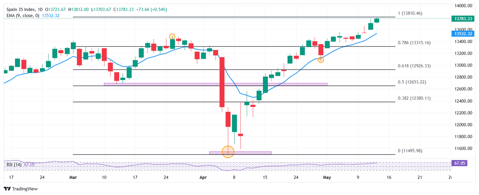 - El Ibex 35 repunta un 0.59% el día de hoy, operando al momento de escribir sobre 13.790.