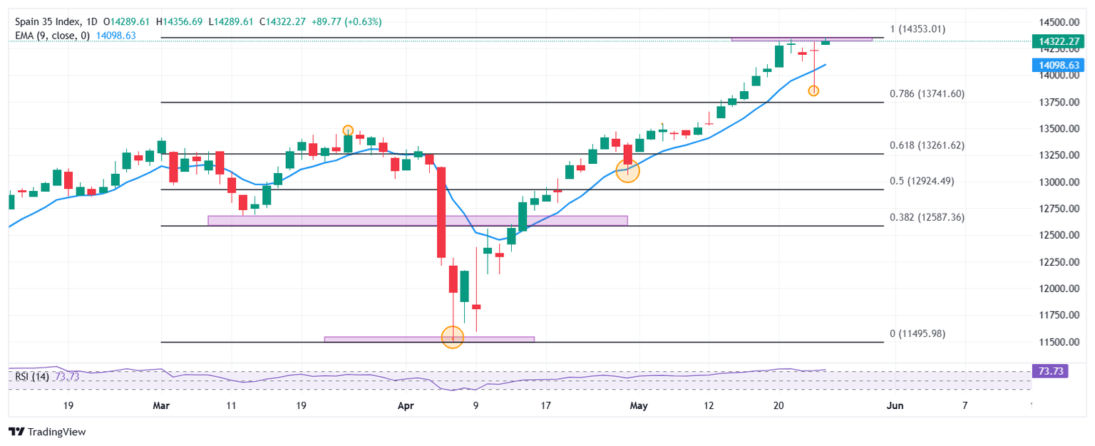 El Ibex 35 marcó un mínimo diario en 14.289, donde atrajo compradores que impulsaron el índice a máximos no vistos desde el 8 de enero en 14.356. Actualmente, el Ibex 35 se negocia en 14.328, subiendo un 0.68% diario.