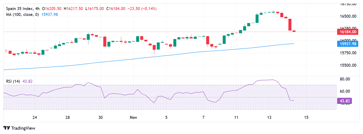 De seguir cayendo, el Ibex debería quebrar por debajo de 16.000 para encontrar soporte en 15.938, media móvil de 100 días. Por debajo, el descenso puede extenderse hacia 15.720 puntos, mínimo de noviembre registrado el día 4.