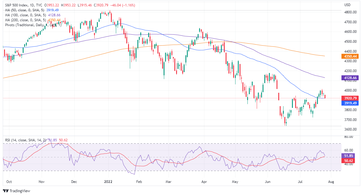 En el momento de redactar este informe, el S&P 500 se situa en los 3.920,79 puntos, con una caída del 1.16%, mientras que el Nasdaq, de gran peso tecnológico, se desplomaba un 1.79%, hasta los 11.572,09 puntos, y el promedio industrial Dow Jones perdió un 0.44%, hasta los 31.850,33 puntos.