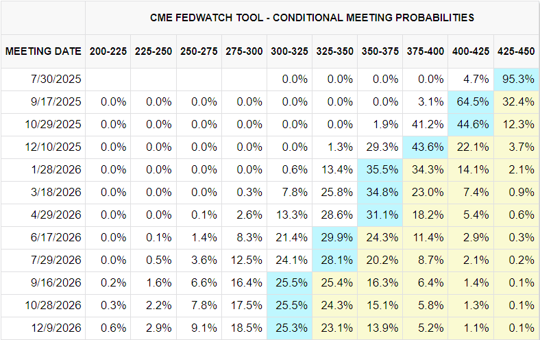 Las fuertes ganancias en el NFP neto de ganancias de empleo también han aplastado las esperanzas de recortes de tasas en el mercado. La superación de las expectativas de empleo de junio ha aniquilado cualquier expectativa del mercado de un recorte de tasas en la próxima reunión de tasas de la Reserva Federal (Fed) a finales de mes, y las probabilidades de tres recortes de tasas antes de fin de año también han sido cuestionadas.