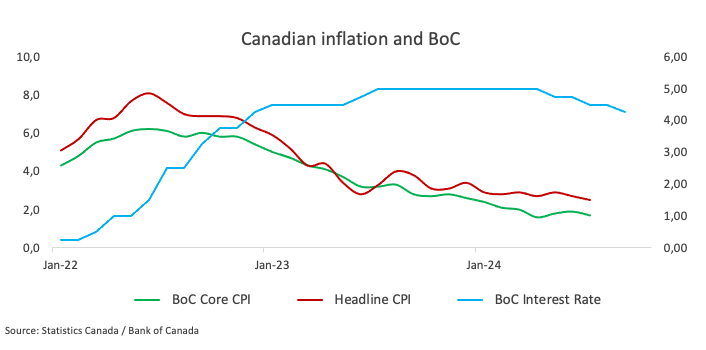 Además de los datos del IPC general, el Banco de Canadá (BoC) publicará su IPC subyacente, que excluye elementos volátiles como los precios de los alimentos y la energía. En julio, el IPC subyacente del BoC mostró un aumento del 0,3% respecto a julio y un incremento del 1,7% en el último año. Mientras tanto, el IPC general subió un 2,5% en los últimos 12 meses, el nivel más bajo en los últimos 40 meses y un 0,4% respecto al mes anterior.