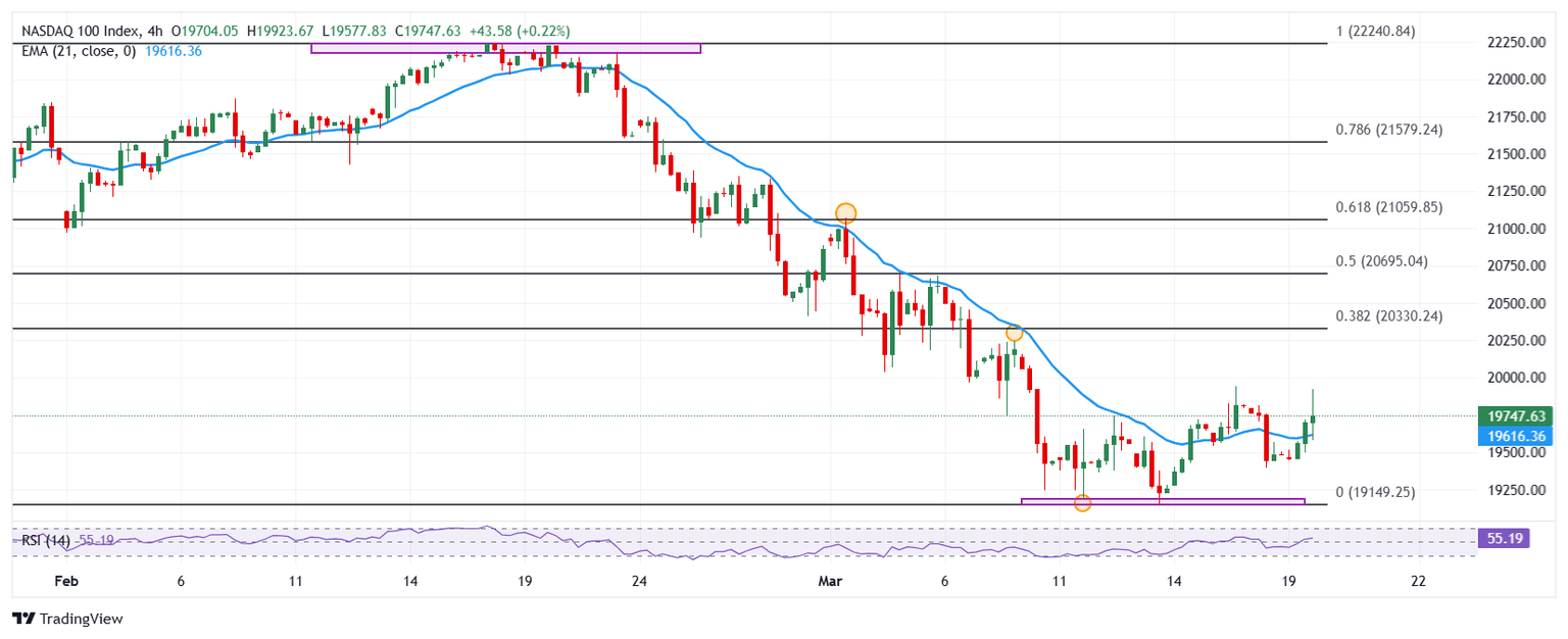 El Nasdaq 100 marcó un mínimo del día en 19.447, encontrando compradores agresivos que impulsaron el índice a un máximo de dos días en 19.837. En estos momentos, el Nasdaq 100 opera en 19.825, ganando un 1.72% en el día.