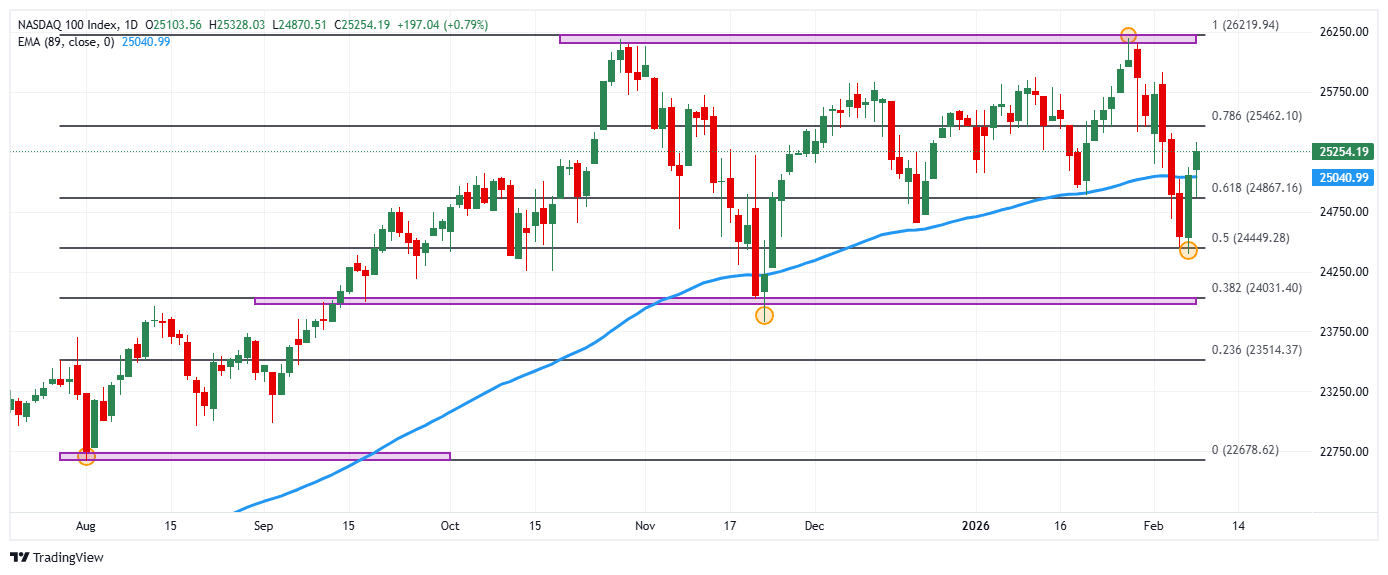 - El Nasdaq 100 repunta un 0.79% en el día, visitando máximos del 4 de febrero en 25.328.