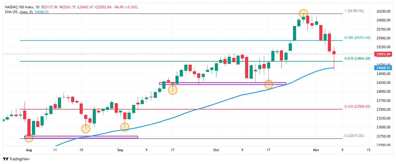 - El Nasdaq 100 cae un 0.34% en la última jornada de la semana, alcanzando mínimos del 17 de octubre en 24.602.