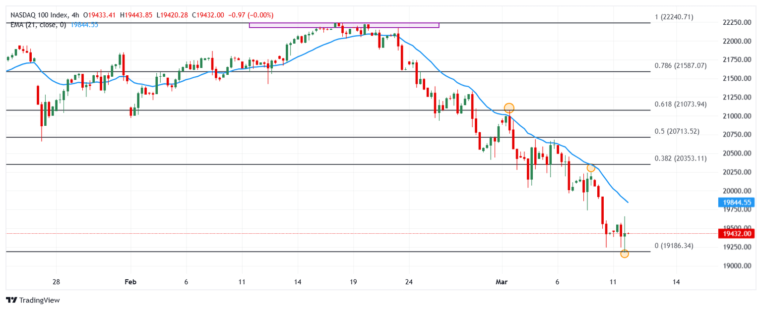 - El Nasdaq 100 finaliza la jornada del martes con una pérdida marginal de un 0.05%, operando al momento de escribir en 19.432.