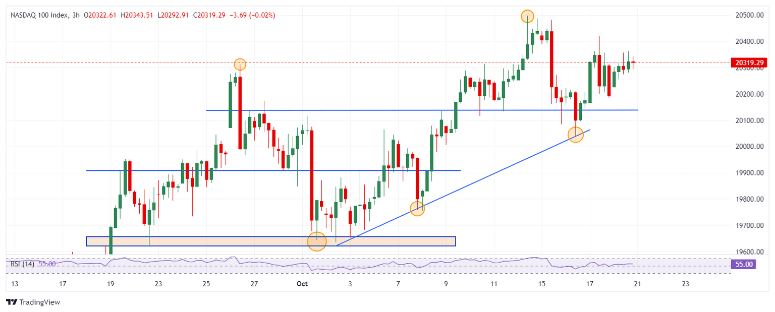 Al alza, la resistencia más cercana está en 20.497, punto pivote del 14 de octubre. La siguiente área de resistencia clave está en 20.589, dada por el máximo histórico alcanzado el 15 de julio.