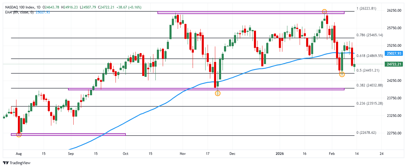 El Nasdaq 100 registró un mínimo del día en 24.507, donde encontró compradores agresivos que llevaron el índice a un máximo diario en 24.916. Al momento de escribir, el Nasdaq 100 cotiza sobre 24.722, subiendo un 0.16% en el día.