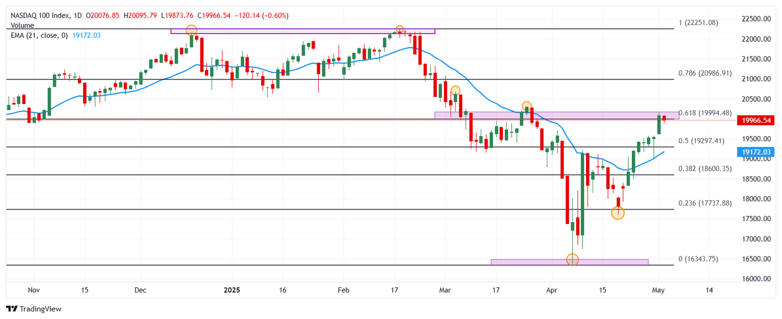- El Nasdaq 100 retrocede un 0.60% en la primera jornada de la semana cotizando actualmente en 19.962.
