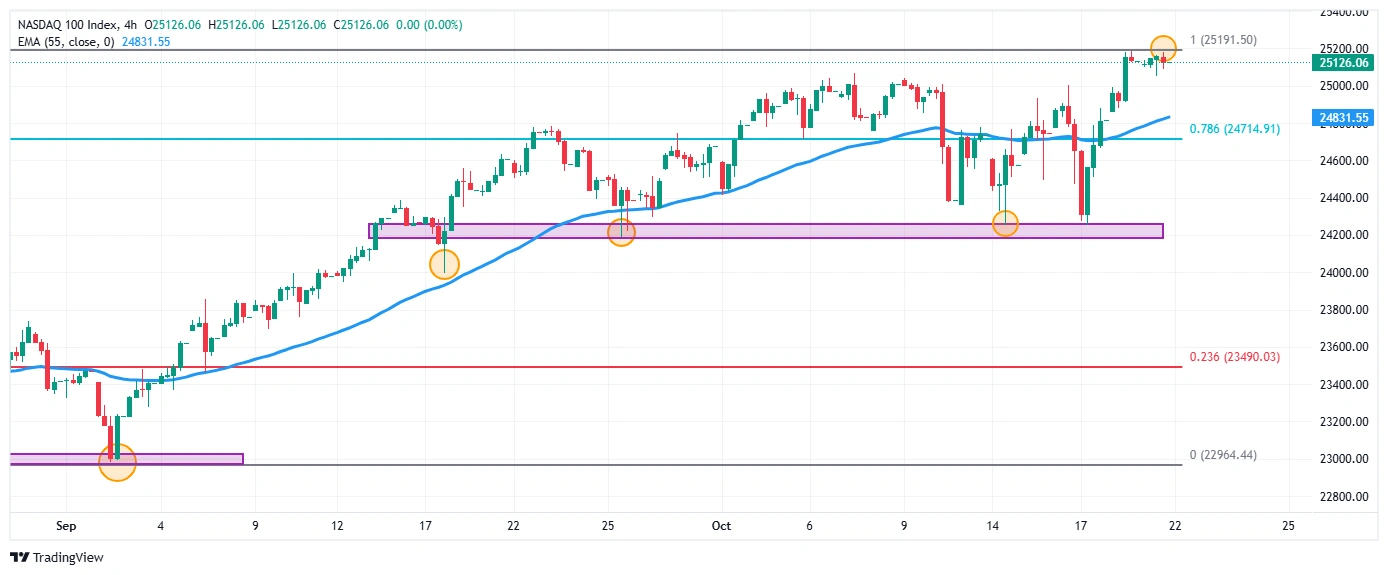 Gráfico de 4 horas del Nasdaq 100