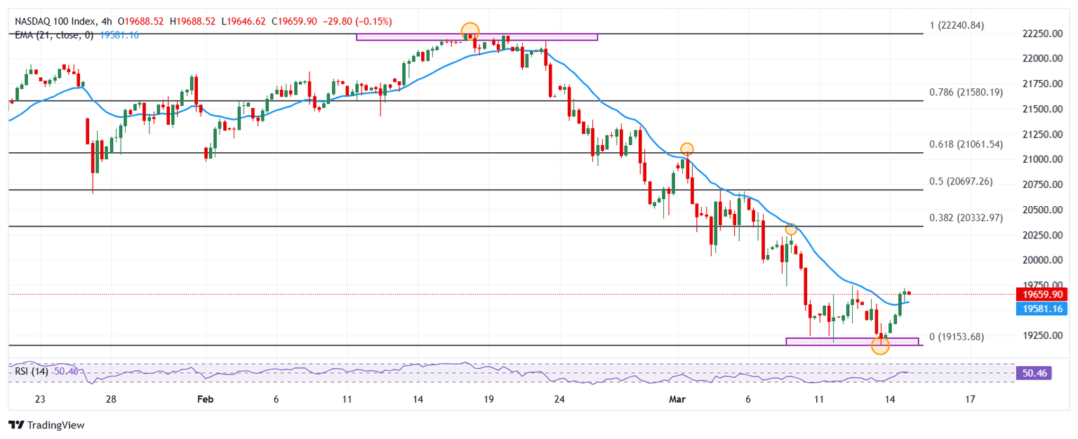 - El Nasdaq 100 repunta un 2.08% en el día alcanzando máximos del 12 de marzo en 19.722.
